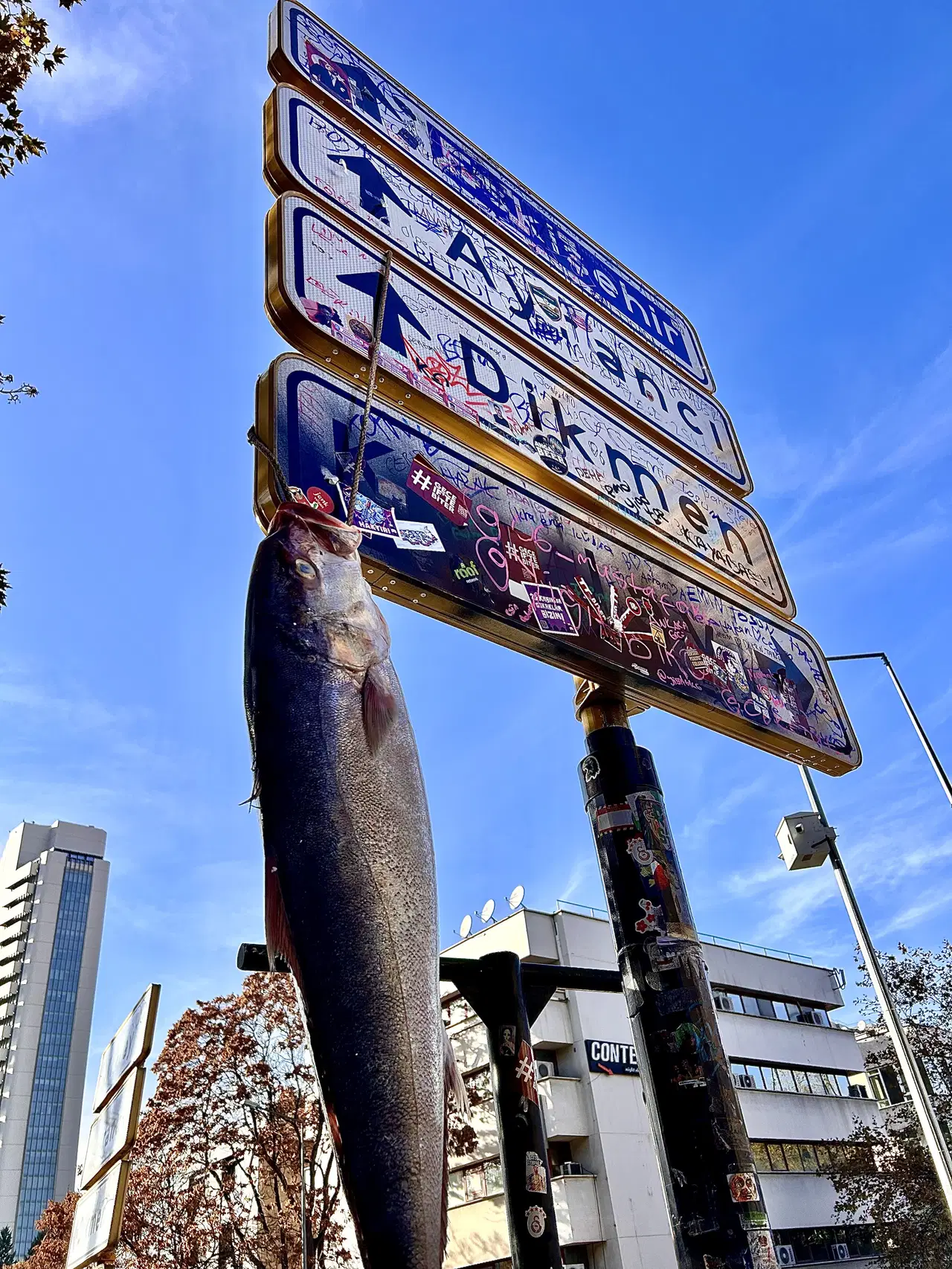 Sosyal medyada gündem olmuştu: Kızılay tabelasına balık asıldı